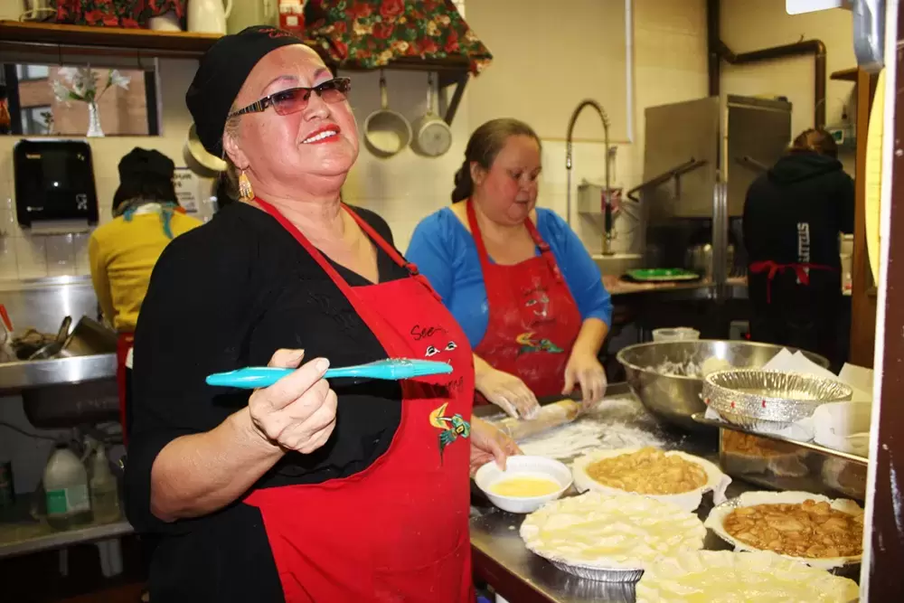 The men led in the singing of the Nuu-chah-nulth anthem, followed by an Ahousaht dinner son. Finally, everyone lined up for a complete turkey feast catered by Jessica Salt and her crew.
