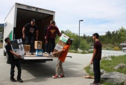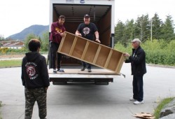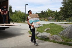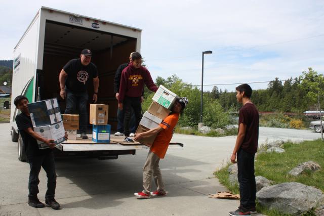 A full library of 4000 books, shelves and tables arrived by barge to Ahousaht on June 7. The complete library is a gift to Maaqtusiis Secondary School from the Write to Read Project; a charitable foundation supported by Lieutenant Governor Judith Guichon and volunteer Bob Blacker.