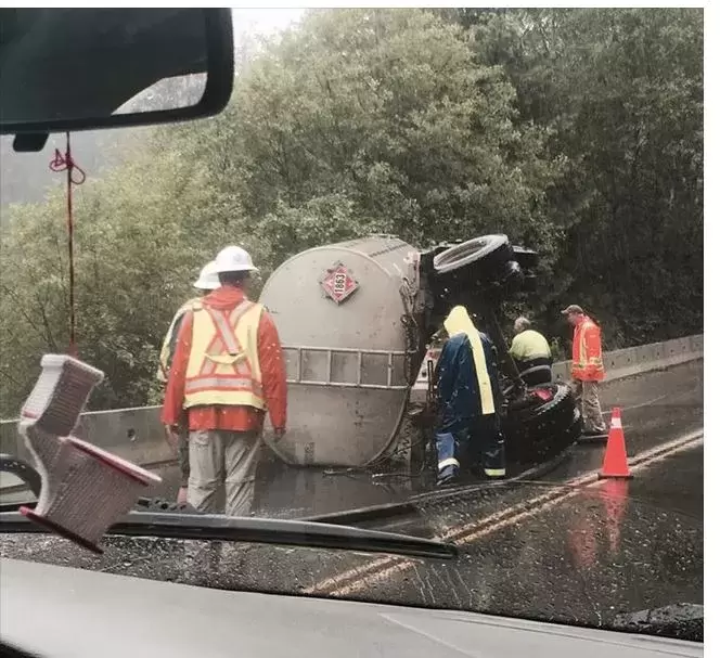 Some travelers were able to get around the truck by single-lane, alternating traffic shortly after the accident - but it wasn’t long before the road was closed in both directions. Crews worked to remove the tanker and clean up the spilled fuel.