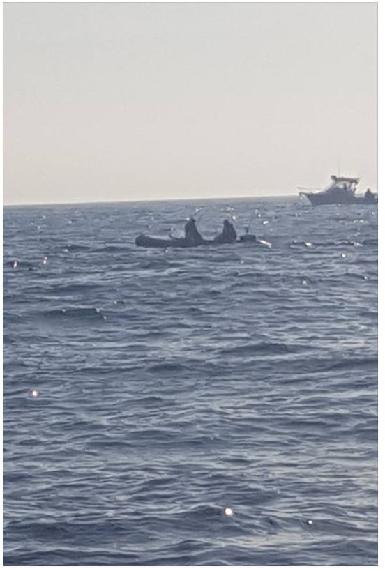 As over 60 sports fishing boats were in the area, plus three trawlers, two people cast lines from a small raft in the offshore waters. The two individuals in the boat couldn't be identified by Frank.