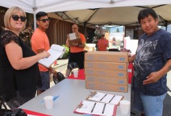 Families were treated to a free lunch of hamburgers and hotdogs while children lined up for boxes of free school supplies.