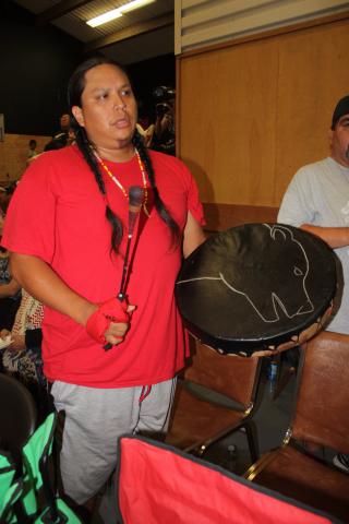 The first order of business was a ceremonial blessing or cleansing of the floor followed by the singing of Ha’wilth Uukwa Qum’s (James Swan) Yaht-yahta, which is a ‘drying of the tears’ song and dance, according to Ivey.