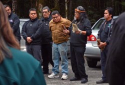 Prior to the commencement of the work, Tla-o-qui-aht members performed a blessing ceremony at the site. Masso said there is some political significance in that.