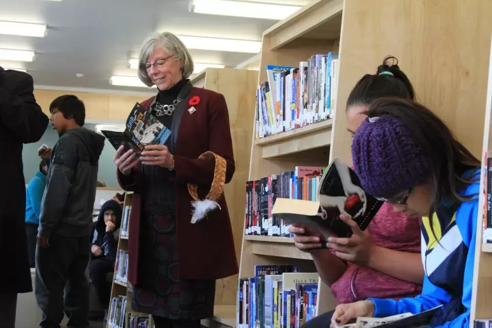 To mark the library’s official opening, the Grade 12 student and Guichon cut a cedar rope tied to the facility’s doors when the Lieutenant Governor visited Ahousaht on Nov. 6 with volunteers from Write to Read.