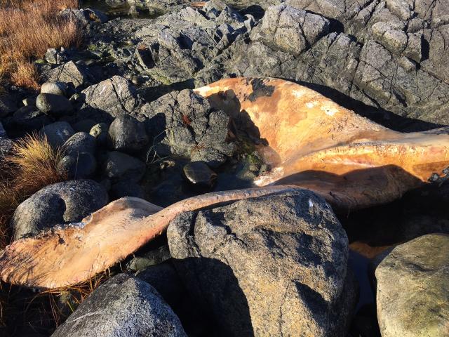It has been confirmed that the 11.8-metre dead whale reported floating off Tofino in the first week of October was the same whale found on Mussel Beach on Oct. 11, according to Paul Cottrell, Fisheries and Oceans Canada’s Pacific Region Marine Mammals Coordinator.
