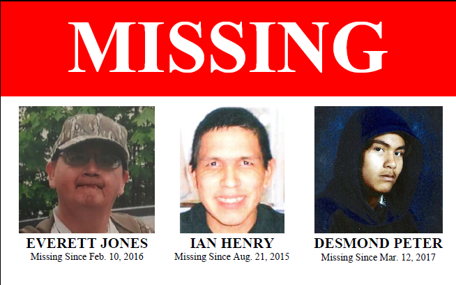 Corporal Kerry Howse, head of the Duncan RCMP’s First Nations Unit, said Desmond Peter’s file has been transferred to the BC Missing Person’s Centre in Vancouver for complete review with hopes that a fresh set of eyes may reveal clues. Howse said there have been no new leads in the Henry case, and it has gone to the RCMP’s Major Crime Unit in Victoria for review. The RCMP is investigating tips in the case of Everett Jones, said Howse.