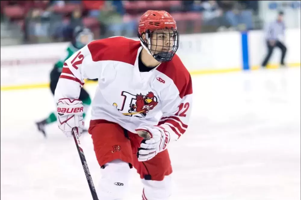 The 21-year-old member of the Ditidaht First Nation is a rookie forward with the State University of New York (SUNY) Plattsburgh Cardinals men’s hockey team.