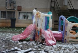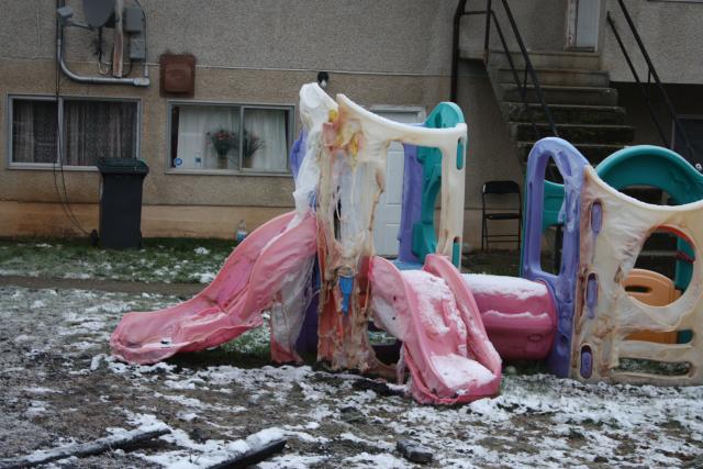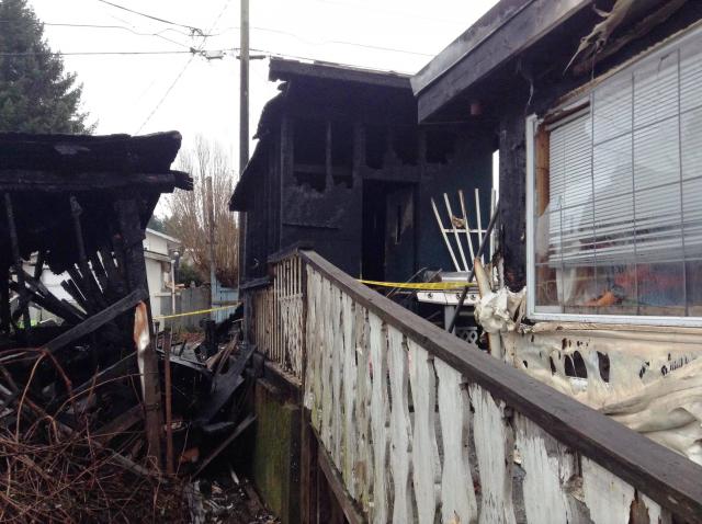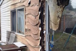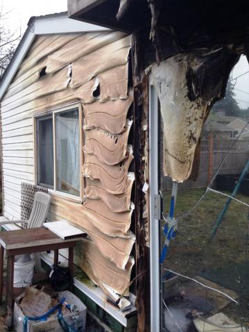 The fire appears to have started in the neighbor’s carport. There is a four plex next door filled with families with small children. The fire spread to a storage shed in Frank’s back yard then jumped over to the back of her house, melting the siding and cracking windows.