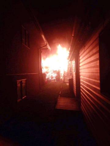 The neighbor’s carport was fully engulfed in flames and the fire had spread to a wooden storage shed on Frank’s property. The shed is about 10 feet from the main house.