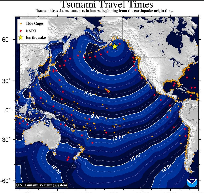 By 4:35 a.m. the tsunami warning for the West Coast was cancelled, with the National Tsunami Warning Centre reporting water levels to have risen by just seven inches at Kodiak Island and five inches at the northern portion of Haida Gwaii.