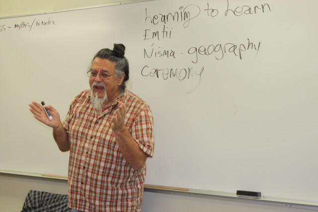 Ron Hamilton, Hupacasath, serves as one of the Nuu-chah-nulth language instructors. He said he is pleased to work with a group of so many people who want to learn. He acknowledged that he is not a language expert.