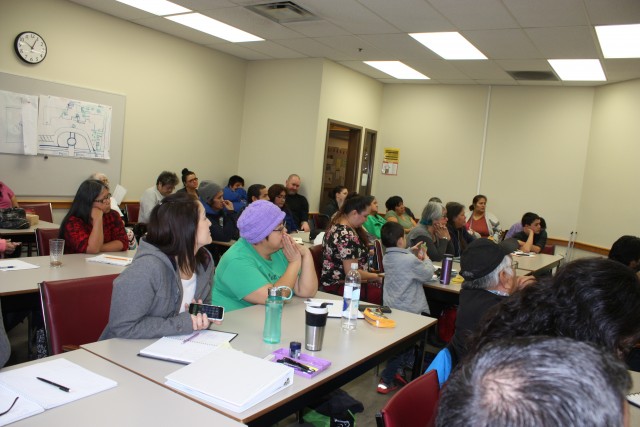 Wells is part of the Quuquuatsa Language Society (QLS) and has worked alongside her QLS peers Shawnee Casavant, Patti Frank, Jane Jones and Gerri Thomas to bring a university-accredited language program to Nuu-chah-nulth learners. After whirlwind of coordination and preparation, the first class of 33 registered students filled the desks, eager to begin their 12 months of studies. They will be working one to two weekends every month so that they can continue working at their regular jobs.