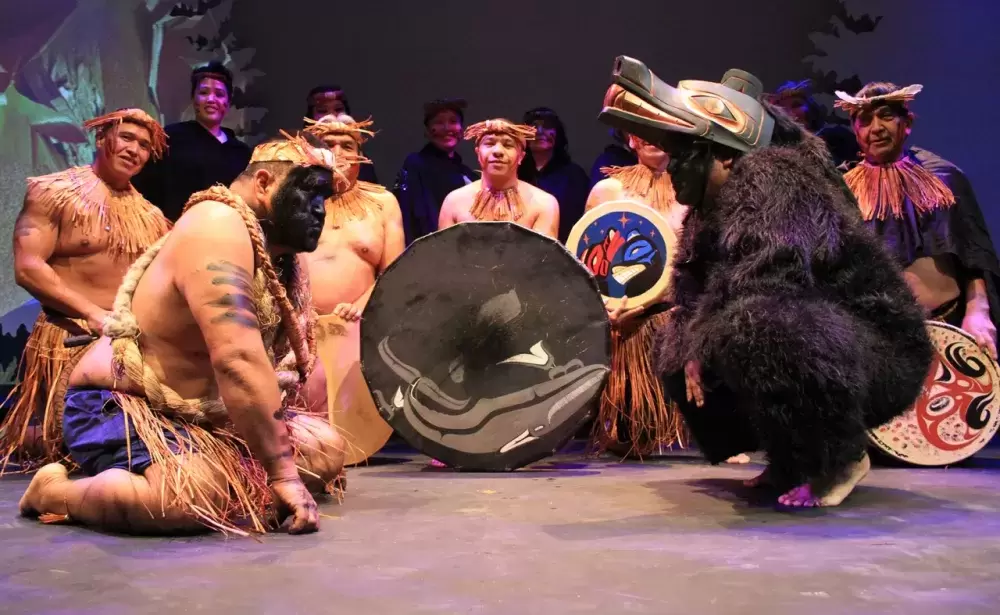 “It’s on a theatre stage, it’s a theatre setting, there’s so many different protocols in this theatre than there is to a potlatch,” noted Louie Jr. before the first performance “It’s definitely making me nervous. I’ve performed in front of thousands of people at canoe journeys. I still get nervous then, but usually it’s no problem. This particular setting is rather different.”