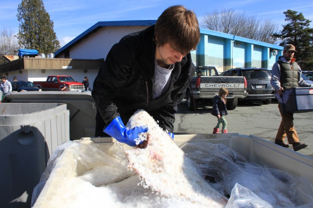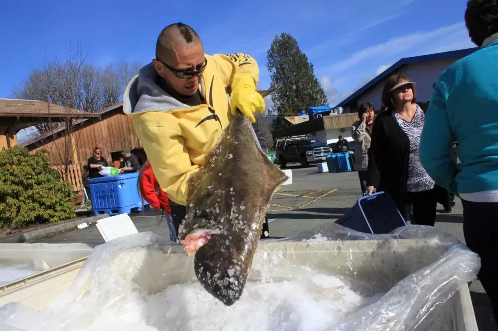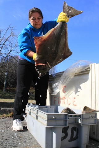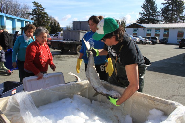 Port Alberni Lineups began this morning by Maht Mahs for the distribution of halibut from Tseshaht and Hupacasath fisheries. Tseshaht members received their food fish just after 10 a.m., followed by Hupacasath members later in the afternoon fromt 4 - 6 p.m.