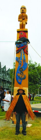 With their similar cases of historical convictions from rapidly advancing colonial governments, the Hesquiaht and Tsilhqot’in have shared in the recognition of their hanged chiefs. In 2008 Tsilhqot’in members attended the raising of a totem pole in Tofino, before the piece was transported to its final place in Homiss, Anayitzachist’s homeland. Commemorating the memory of the hanged Hesquiaht chief, that pole was designed by Tim Paul, who is a renowned carver.