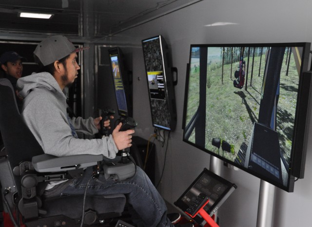 Sharon said she would seriously consider a career in forestry, but on the technical/engineering side, rather than at the ground level. Despite having no experience on simulators, she said she feels comfortable behind the controls.