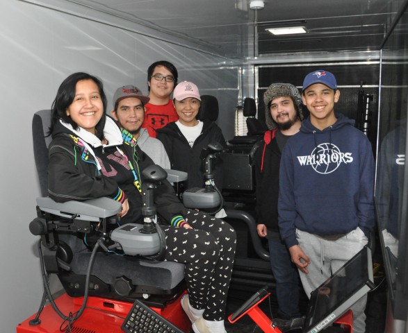 Two classes of Tseshaht First Nation students learned how to operate high-tech forestry equipment on simulators provided by Vancouver Island University on April 20.