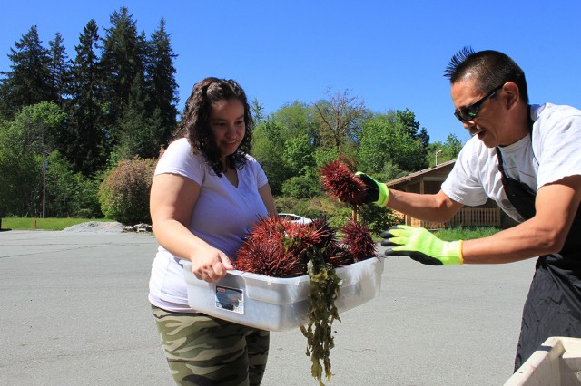 Port Alberni On Friday morning the Tseshaht handed out sea urchins and sea cucumbers to its members outside of Maht Mahs on the First Nation's reserve. The seafood was distributed by the Tseshaht's fisheries department.