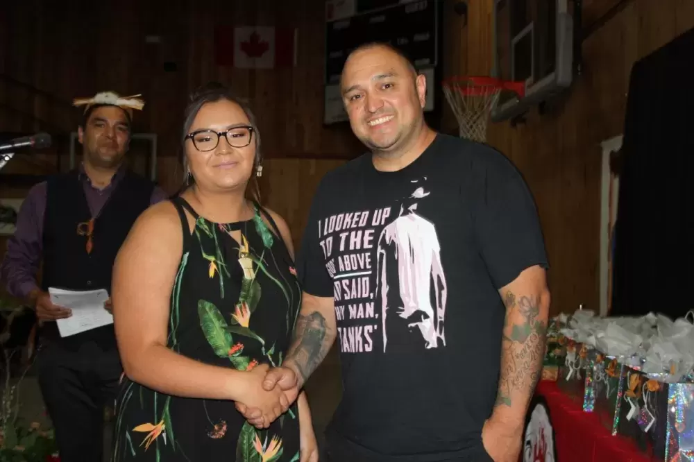 Guest speaker Ehattesaht Grade 12 graduate Corina Ambrose talked about her struggles to complete her high school education. It started, she said, with a terminal cancer diagnosis for her late father, who fought for eight months before losing his battle.