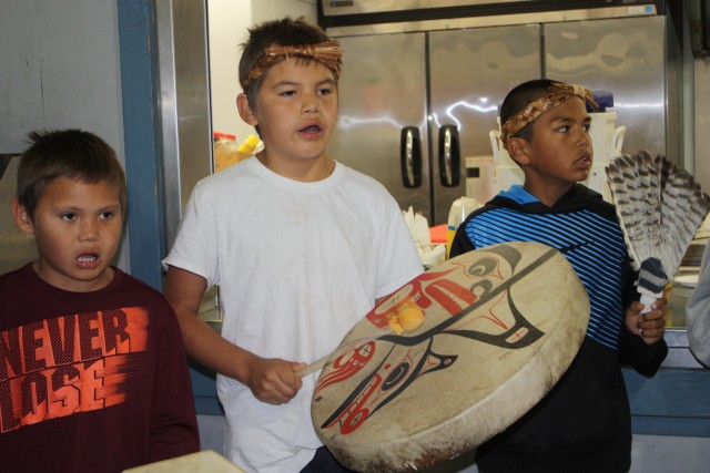 John (Hudson) Webster, speaker for Tyee Ha’wilth Maquinna, introduced each of the Ahousaht Ha’wiih in the Ahousaht language. He went on to talk about the family connections that some of the Ahousaht have with the Ha’wiih of other Nuu-chah-nulth nations, demonstrating the interconnectedness and unity that the H a’wiih share.