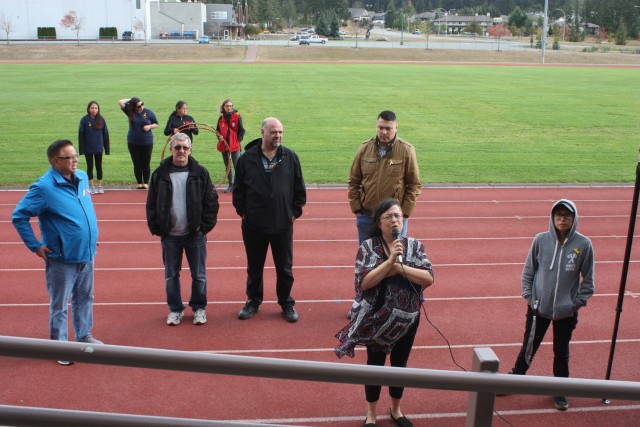 Hugh Braker welcomed the small crowd to his home territory on behalf of Tseshaht nation. He noted that all communities have been touched by suicide. He said it is important to take measures to stop this thing from happening again.