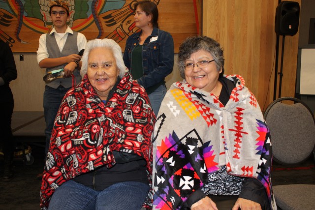 Members of the c̓awaackʷiniš planning committee took time to blanket local language champions. These are elders and fluent speakers as well as teachers actively sharing the language.