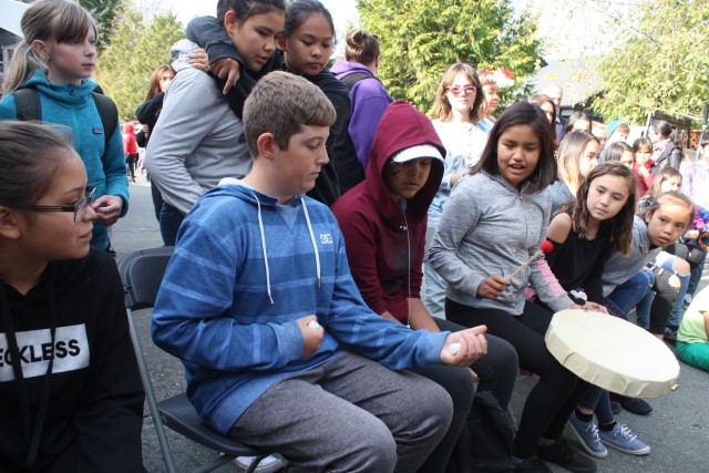 There was a cultural performance by students of Wickaninnish Elementary School that featured girls doing a paddle dance while the boys sang in a drum circle. The performers were made up of all races; the lead singers being Mike Crosina from Tla-o-qui-aht and Liam Manmohan from Trinidad.