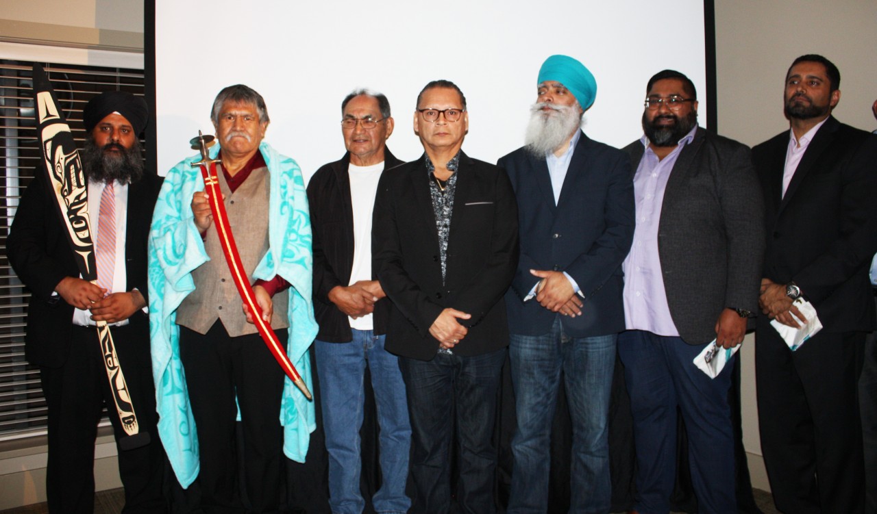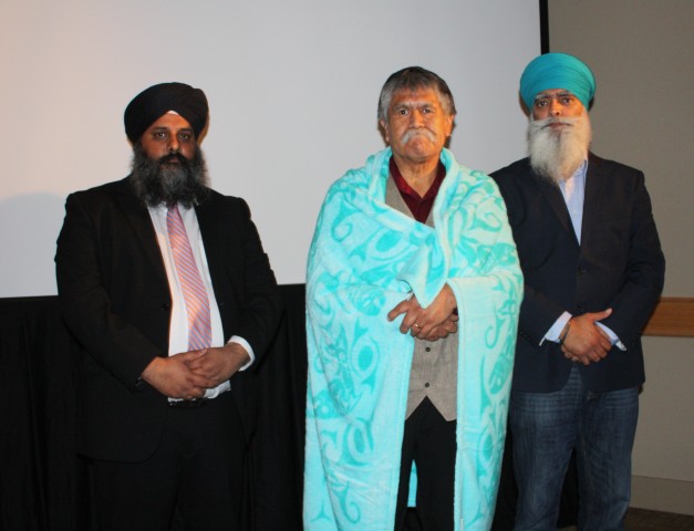 The leaders of Khalsa called upon Maquinna, Ahousaht’s Tyee Ha’wilth or head chief, Lewis George and blanketed him. In addition, they honoured Maquinna by presenting him with a 19th century talwar (Sikh ceremonial sword).