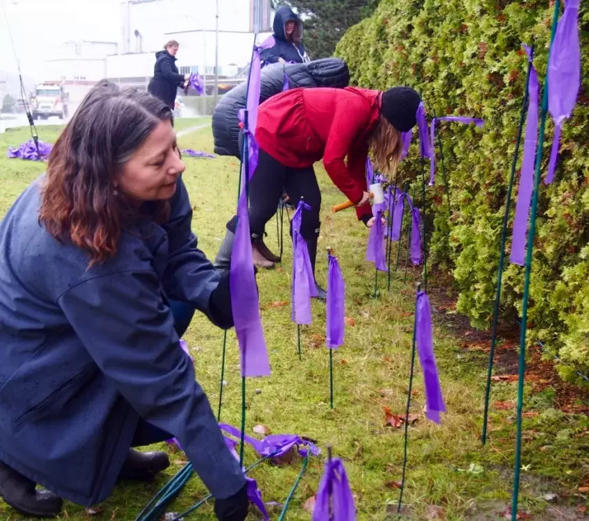 Nov. 25 is the International Day to End Violence Against Women. The annual Purple Ribbon Campaign calls attention to the cause with ribbons along Stamp Avenue representing the number of reported cases in the city over the past year.