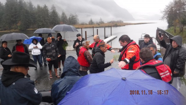 “Our people were very complimentary of Fisheries and Oceans today. They were able to bring the orca to us, rather than us going to the site. It’s a very difficult time weather-wise to get out there,” said Maquinna. “They were gifted by one of our chiefs in appreciation for what they’ve done today for us.”