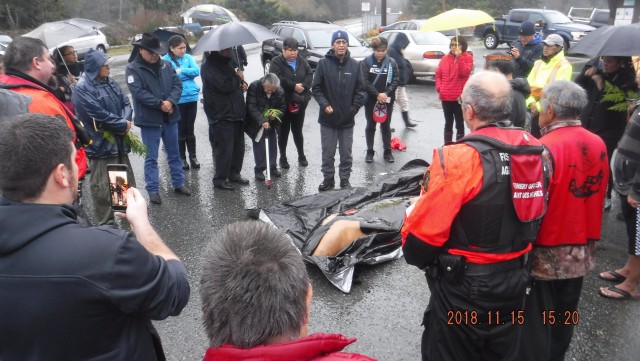 Properly marking the passing of the kakaw`in was particularly important to many Mowachaht/Muchalaht members, and the First Nation’s elders gathered before the orca was transported from Nootka Island to determine the appropriate ceremony.