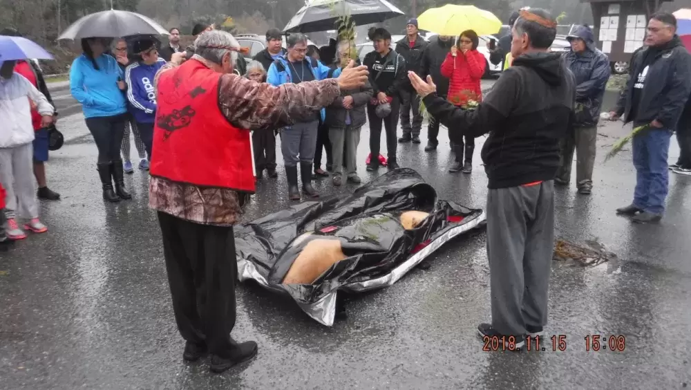 On Thursday elders from the Mowachaht/Muchalaht First Nation marked the passing of a significant being in the Nuu-chah-nulth world, after a baby killer whale was discovered on Nootka Island Wednesday.