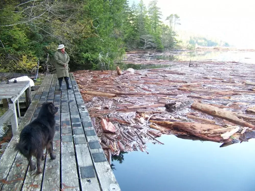 Concerned that the debris will dam Hesquiaht Lake with a log jam, Charleson has been reaching out for help and answers.