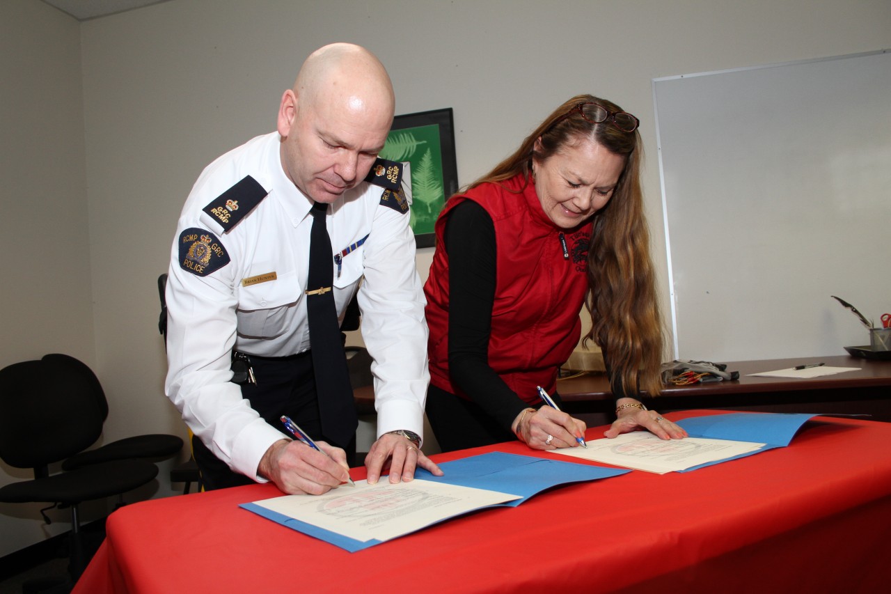 Today members of the RCMP came to the Teechuktl Mental Health office to sign an agreement that for years Geraldine Edgar-Tom didn’t think was possible.