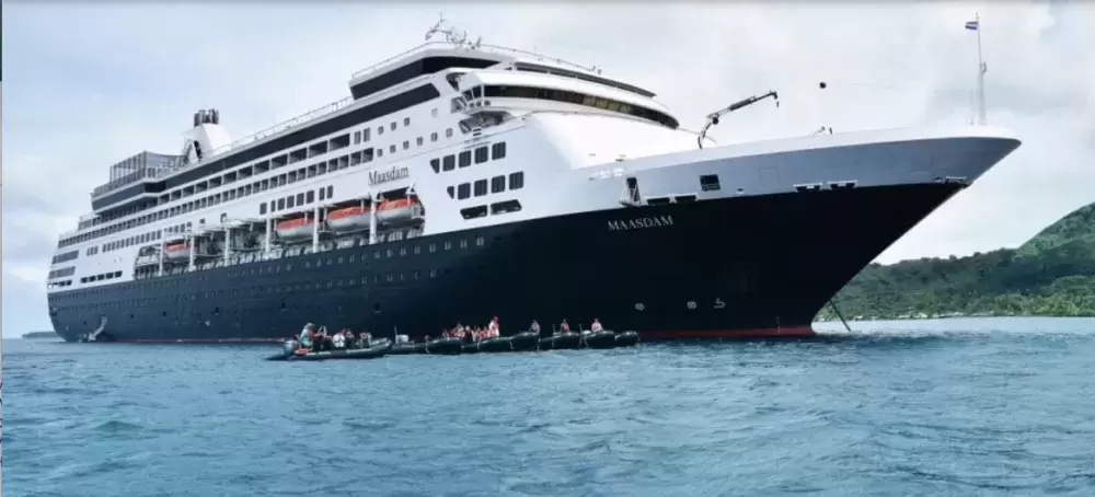 Maasdam’s visits are part of Holland America’s “expedition demographic” test for a younger, more active type of cruise passenger. Named after the Maas River in the Netherlands, Maasdam is a sister ship to MS Statendam, which visited the port in 2009. These are medium-sized vessels built 25 to 30 years ago with a high degree of comfort and luxury.