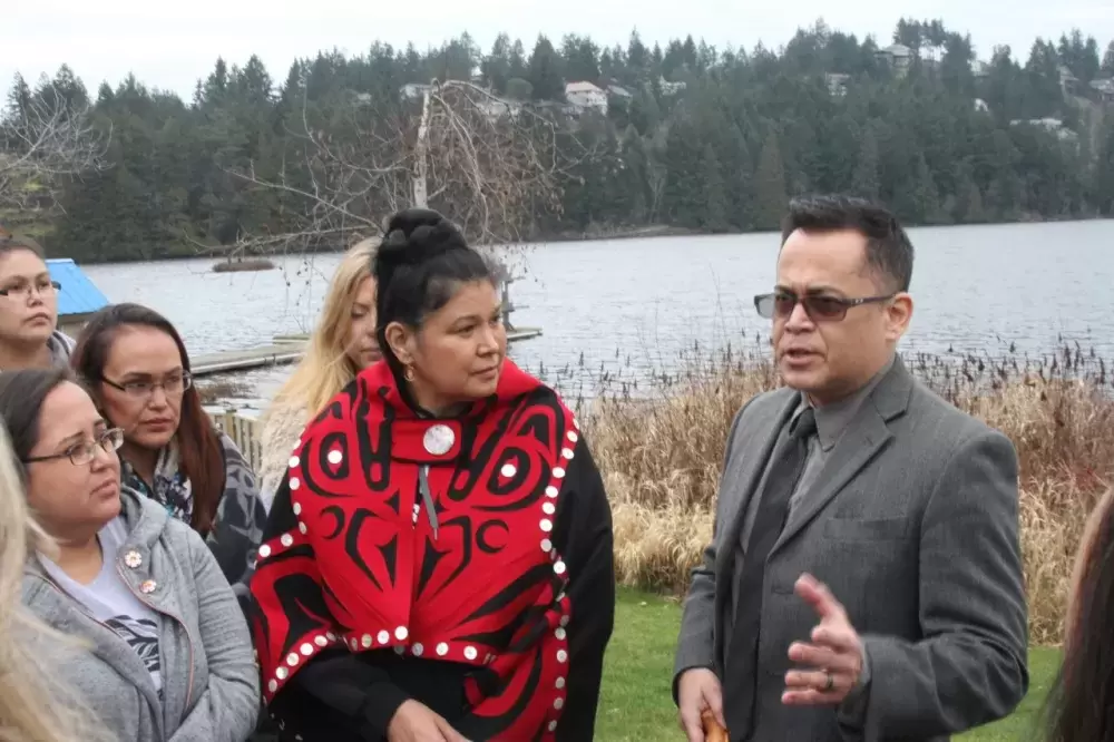 In the final stage of a three-week intensive harm reduction course through the Nuu-chah-nulth Tribal Council’s Teechuktl Mental Health department, McCarthy took his students to the shore of Long Lake in Nanaimo to once again attune to the inherent wisdom in the water. Running over three separate sessions from November to late January, this training is aimed to prepare representatives from each of the NTC’s 14 member nations to deal with addictions issues in their respective communities.