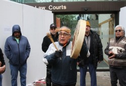 “Trudeau’s in town today and if he thought reconciliation was the most important thing and his most important relationship, he’d be standing here with us today and telling us we’re going to resolve this,” said Judith Sayers, president of the Nuu-chah-nulth Tribal Council, while standing on the courthouse steps in Vancouver. “We’ve been fighting for our place in this country; reconciliation is about that right, that economic power and being back on the waters. I think that’s why all nations and putting their eyes on us.”