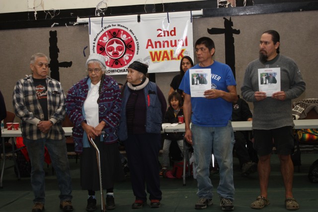 Snow and sub-zero temperatures forced the postponement of the 2nd Annual Walk for Missing & Murdered Women, Men and Children in Duncan on Feb. 9. But only the walk portion was postponed; organizer Monica Patsy Jones invited people into a nearby Cowichan gym where they were served free refreshments and witnessed ceremonies for the families of the missing and/or murdered residents of Duncan, B.C.
