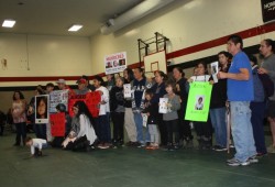Glenn Patterson got the gathering underway with the singing of Lakota prayer songs for the people and other groups came forward to pray and offer words of support.