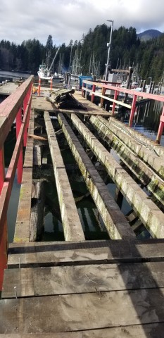 Elected Chief Greg Louie said some much needed structural repairs are being made on the main dock in Ahousaht. Formerly a federal dock maintained by the government, the structure was given to Ahousaht, leaving the nation on the hook for maintenance and repair.