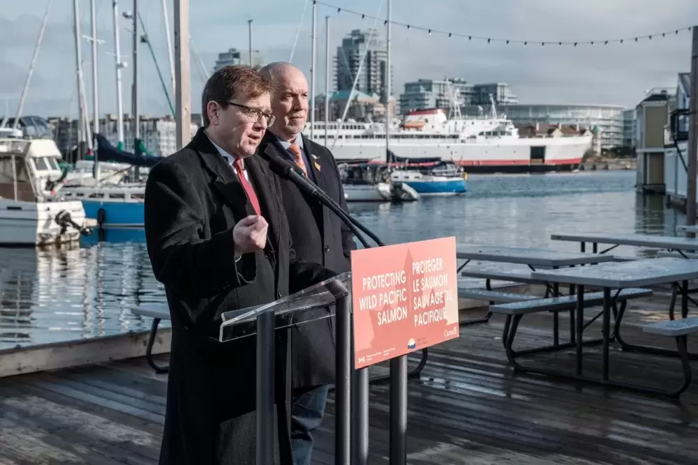 Premier John Horgan and Federal Fisheries Minister Jonathan Wilkinson invited potential stakeholders to take part in a $142.85 million program to protect and restore wild salmon stocks on the B.C. coast. The announcement took place in Victoria today.