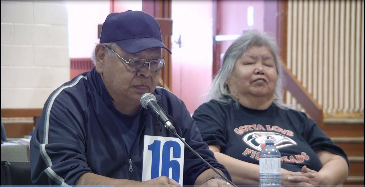 Larry Thomas, age 77 of Ahousaht, says he is still learning the language. The residential school survivor said that he was in Alberni District Secondary School in 1957 when residential school children were integrated into the public system. Thomas is a singer and prides himself on learning the stories behind each of the songs he sings so that he can share these teachings with future generations.