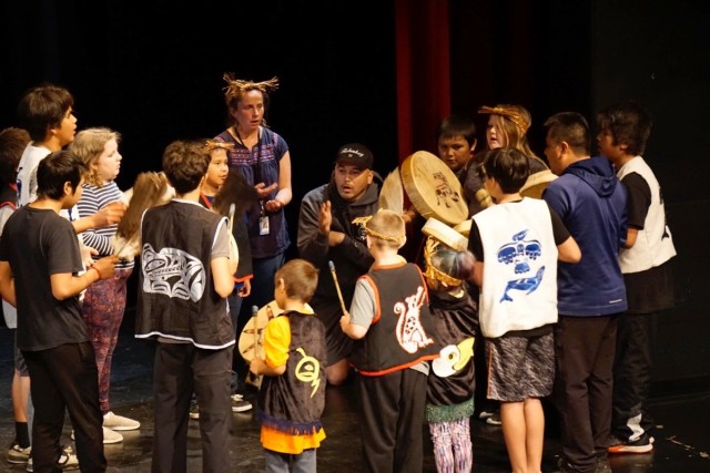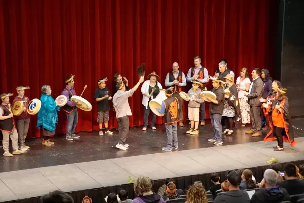 To open the performances, Aaron Watts of Tseshaht led the song We Are Strong with help from students and teachers. Watts gifted the song to SD70 and said it’s a song of celebration.