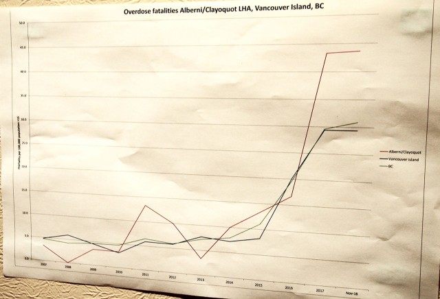 Fifty people have died in the Alberni Valley from overdoses in the last decade, but the city was not listed by the FNHA among “hot spots” in the opioid crisis, a list that includes Campbell River and Kamloops. Figures released in February by VIHA show overdose fatalities in the Alberni-Clayoquot health area far exceed B.C. and Island rates when measured by population.