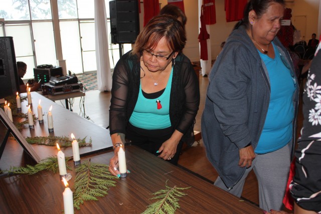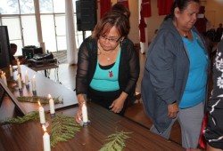 Family members were called up to light the candles during the recent gathering in Port Alberni, one for each of the estimated 40 Nuu-chah-nulth missing or murdered women and girls. The Keitlah family thanked the organizers of the healing event. By standing up and sharing their stories, the sisters of Nadine Marshall said they hoped that they would give others the courage and strength to get through their pain