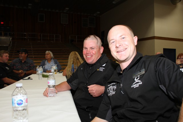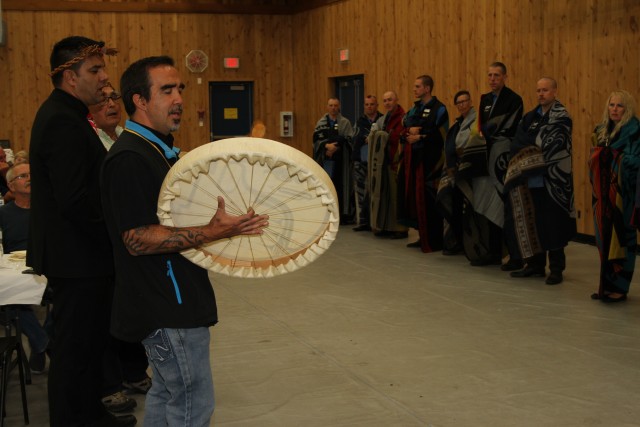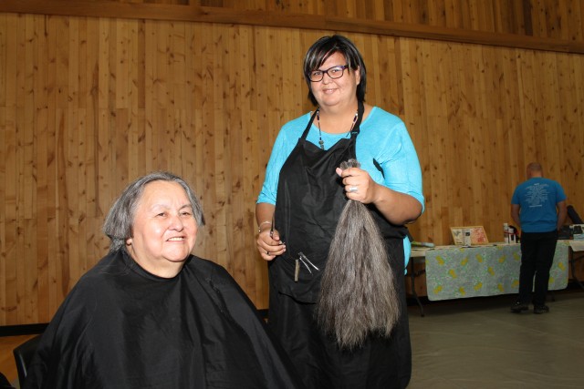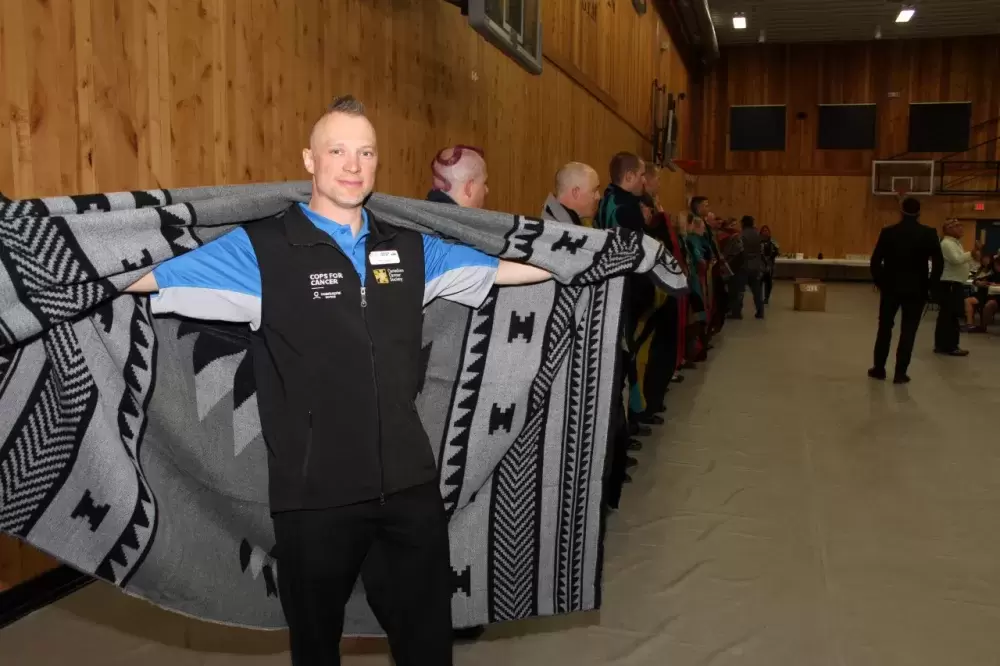 The 1,100-kilometre trek across Vancouver Island to raise funds for childhood cancer treatment has stopped in Port Alberni in recent years, with a fundraising dinner held in the honour of the police officers, firefighters and other emergency service providers who participate in the two-week ride. This year an event was held at the Alberni Athletic Hall, concluding with the riders being blanketed and treated to a song by Tseshaht member Aaron Watts. Organizer Matilda Atleo was also blanketed for her efforts in coordinating the extensive meal, which included turkey, ham, halibut and salmon.