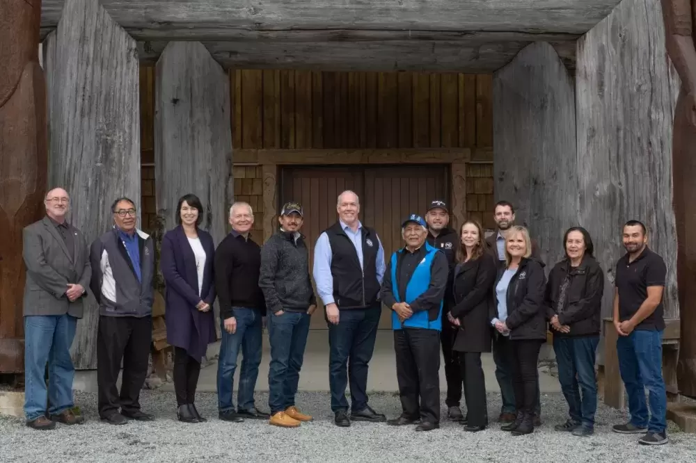 Since Bamfield Main opened in the 1970s the Huu-ay-aht have also lost eight members on the rugged passage, including Tayii Ḥaw̓ił Art Peters. Peters’ grandson Tayii Ḥaw̓ił ƛiišin, Derek Peters, was present at the recent meeting in Anacla, where he said the premier honoured the nation’s elders and the sacred principles of ʔiisaak (Utmost Respect), ʔuuʔałuk (Taking Care of….), and Hišuk ma c̕awak (Everything is One). The Huu-ay-aht showed their appreciation to the premier by giving him the traditional name Yačuk ma tašii (Yatsuk ma tashii), which means “he who walks the path.”