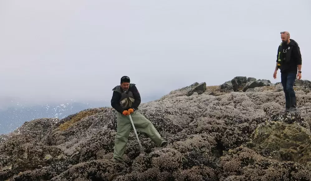 Edwards has been studying the regrowth pattern of the barnacles since she started at T’aaq-wiihak, and has closely monitored five rocks, or plots, that have gooseneck barnacles living on it just off the Tofino coast. It is considered to be quite dangerous, though. Harvesters have to hop onto the slippery rocks, and it is only accessible for a few hours while the tide is low.