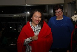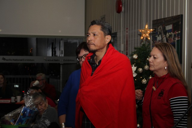 Nuu-chah-nulth-aht living in the Vancouver area flocked to the event for a night of socializing and cultural reminders of their roots on the west coast of Vancouver Island, causing the venue at the Pacific National Exhibition grounds to run out of turkey. The lively evening included stories, song, door prizes and the blanketing of two Nuu-chah-nulth members pursuing different paths.