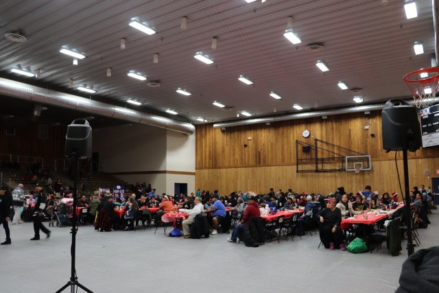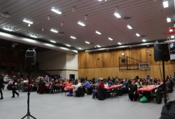 This was the first year the Quu’asa team moved the event to the Athletic Hall, and the size upgrade was definitely needed. With an estimated count of nearly 300 attendees, all of the tables were full by the time meals were served, and there was overflow seating on the bleachers.